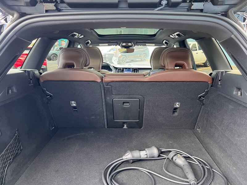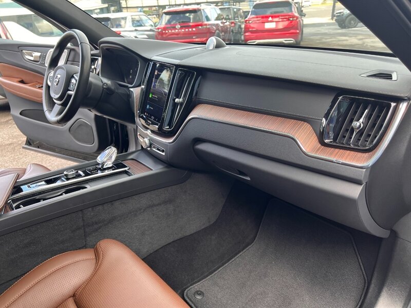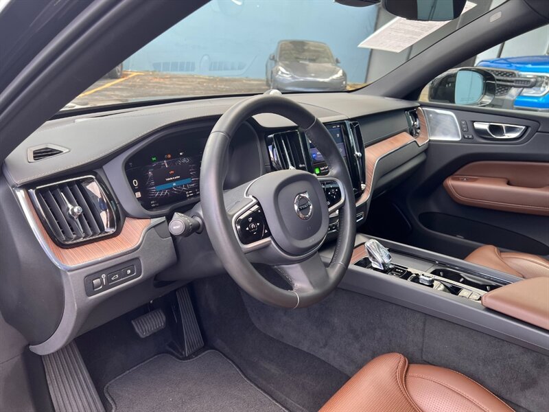 2022 Volvo XC60 Recharge T8 Inscription — Onyx Black Metallic exterior with Maroon Brown Nappa leather interior. Twincharged 2.0L plug-in hybrid (combined 400 hp / 472 ft-lb) with AWD, regenerative braking and selectable drive modes. Factory equipment serves looks, comfort and safety: Inscription luxury trim with power, memory, heated (and ventilated) front seats, premium Nappa leather and wood/metal trim, panoramic sunroof, power liftgate, LED “Thor’s Hammer” headlights, 9" Sensus touchscreen with navigation, Apple CarPlay/Android Auto, Bluetooth and USB ports, premium audio, dual-zone climate control, parking sensors and rearview camera, plus Volvo IntelliSafe suite — City Safety with autobrake, BLIS (blind-spot), Cross Traffic Alert, Lane Keeping Aid, Adaptive Cruise/driver assist features. Under 18,000 miles (avg <4,000/yr), excellent overall condition. EPA ~24 MPG city / 27 MPG highway. Pretty, powerful, and practically pampered — want it?