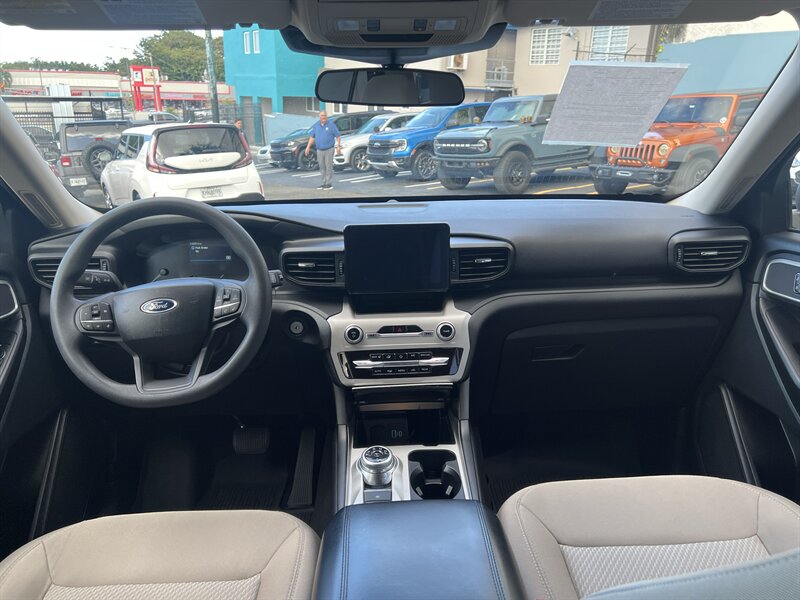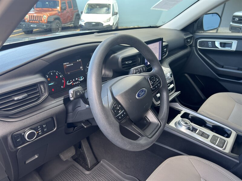 2023 Ford Explorer — Iconic Silver exterior with Sandstone interior. Powered by an EcoBoost 2.3L Turbo I4 delivering 300 hp and 310 lb-ft, paired to an automatic transmission tuned for strong performance and efficiency. Factory-equipped with keyless entry and push-button start, power-adjustable front seats, dual-zone automatic climate control, power liftgate, LED lighting, alloy wheels, Ford SYNC infotainment with Apple CarPlay and Android Auto, Bluetooth and multiple USB ports, rearview camera, and a comprehensive safety suite including automatic emergency braking, blind-spot monitoring with cross-traffic alert, lane-keeping assist, traction and stability control. Excellent overall condition, under 14,000 miles (averaging <4,000 miles/year), and rated about 21 MPG city / 28 MPG highway.