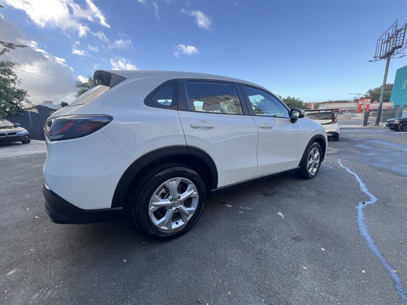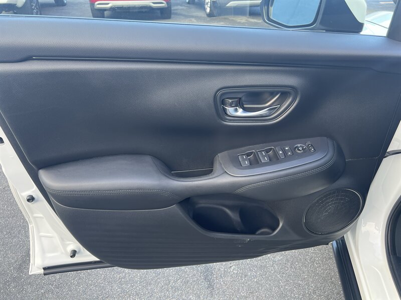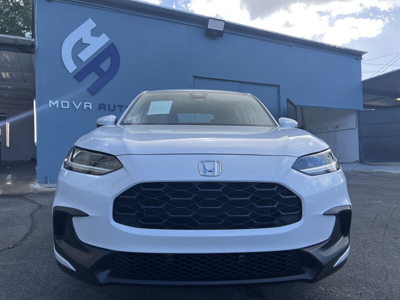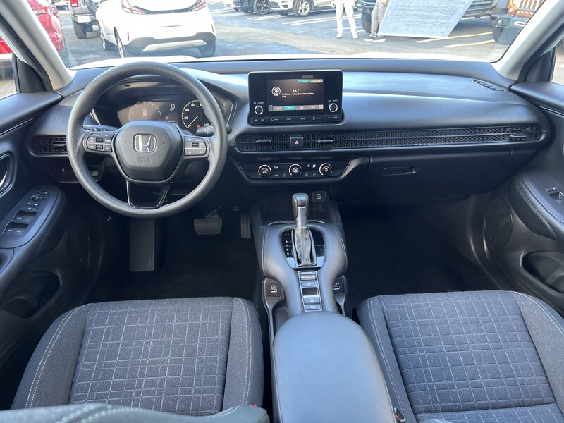 2023 Honda HR-V LX — Platinum White Pearl exterior with a Gray cloth interior, powered by a 2.0L I4 (158 hp, 138 lb-ft) mated to a smooth CVT. Factory-standard features include the Honda Sensing safety suite (Collision Mitigation Braking, Road Departure Mitigation, Adaptive Cruise Control, Lane Keeping Assist), multi-angle rearview camera, remote keyless entry, power windows and locks, air conditioning, cruise control, Bluetooth audio and phone, USB charging port, and the versatile 60/40 “Magic Seat” with multiple fold-flat cargo configurations. Low mileage — under 23,000 miles (averaging less than 6,000 miles/year), excellent overall condition, and efficient at an estimated 26 MPG city / 32 MPG highway — sporty, safe, and ready to brighten your drives!