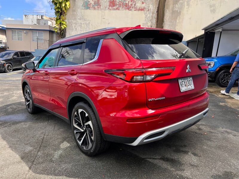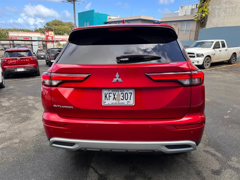2023 Mitsubishi Outlander Black Edition — exterior Red Diamond, interior Negro. Impulsado por un motor 2.5L I4 que entrega 181 hp y 181 lb-ft de torque, este Outlander rinde 24 MPG en ciudad y 31 MPG en carretera y tiene kilometraje excelente con menos de 17,000 millas (menos de 5,000 millas/año). Entre sus equipos de fábrica destaca las llantas de aleación negras de 20” y los detalles exteriores Black Edition, faros LED y luces antiniebla, portón trasero eléctrico y barras de techo; interior de 7 pasajeros con asientos en cuero negro, asientos delanteros calefactados y volante calefactado, asiento del conductor eléctrico y tercera fila abatible; sistema de infoentretenimiento con pantalla táctil, Apple CarPlay/Android Auto, Bluetooth y puertos USB; climatizador de tres zonas; y el paquete de seguridad de Mitsubishi que incluye Frenado Autónomo (Forward Collision Mitigation), Control de Crucero Adaptativo, Aviso de Salida de Carril, Alerta de Punto Ciego y Alerta de Tráfico Cruzado Trasero. El vehículo está en condiciones generales excelentes.
