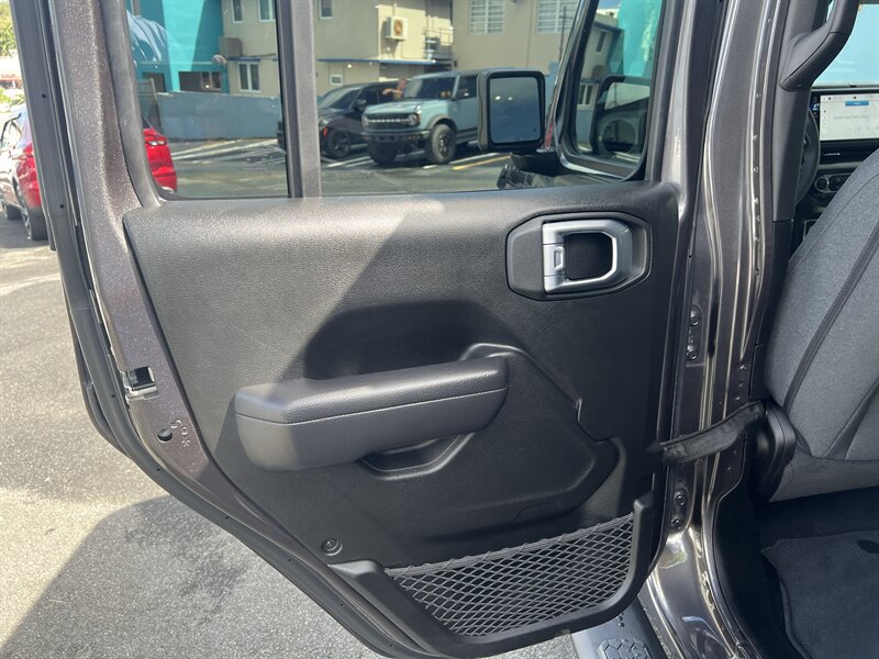 2024 Jeep Wrangler Sport — Cheerful, capable and ready for fun! Powered by a 3.6L V6 with 285 hp and 260 ft-lbs of torque, this Granite Crystal Metallic Clear Coat Wrangler with a Black interior is in excellent condition and has under 16,000 miles (averaging less than 6,000 miles/year). EPA estimates: 16 MPG city / 22 MPG highway.