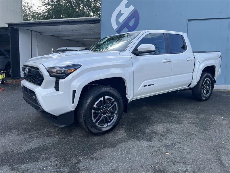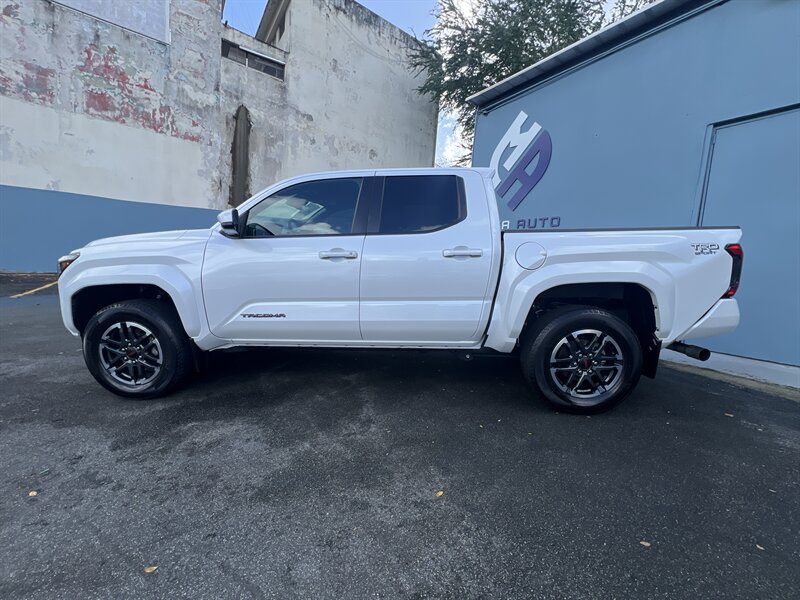 2024 Toyota Tacoma SR5 — Ice Cap exterior, Black interior. Cheerful, capable and like-new with a 2.4L Turbo I4 delivering 278 hp and 317 ft-lbs of torque, under 13,000 miles (averaging <5,000 miles/year) and excellent overall condition. Factory-standard features include the Toyota Safety Sense suite (Pre-Collision System with Pedestrian Detection, Lane Departure Alert with Steering Assist, Dynamic Radar Cruise Control, Automatic High Beams), a modern infotainment system with Apple CarPlay & Android Auto, Bluetooth and USB connectivity, rearview camera, remote keyless entry, power windows and locks, steering-wheel audio controls, cruise control, comfortable Black cloth seating, durable pickup bed and towing-ready hardware — efficient at 21 MPG city / 26 MPG highway.