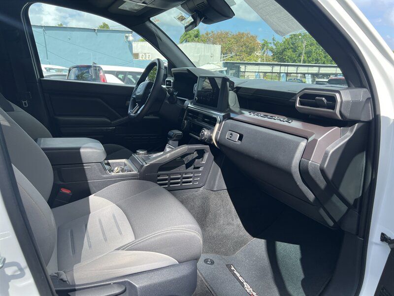 2024 Toyota Tacoma SR5 — Exterior Ice Cap, interior en negro. Alegre, lista y prácticamente nueva con un motor 2.4L Turbo I4 de 278 hp y 317 lb-ft de torque, menos de 13,000 millas (promedio <5,000 millas/año) y en excelente estado general. Las características de fábrica incluyen el paquete Toyota Safety Sense (Sistema de Pre-colisión con detección de peatones, Alerta de salida de carril con asistencia de dirección, Control de crucero dinámico por radar, Luces altas automáticas), sistema de infoentretenimiento moderno con Apple CarPlay y Android Auto, conectividad Bluetooth y puertos USB, cámara de retroceso, entrada remota sin llave, ventanas y seguros eléctricos, controles de audio en el volante, control de crucero, asientos de tela negros cómodos, caja de carga resistente y preparación para remolque — rendimiento de 21 MPG en ciudad y 26 MPG en carretera.